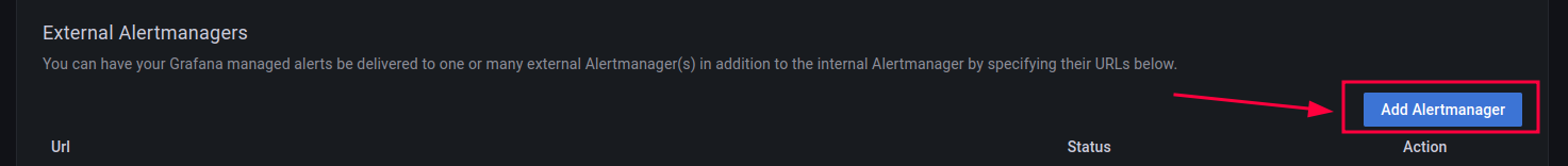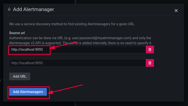 #### 3 - Type URL alermanager and click in "Add Alertmanagers" button