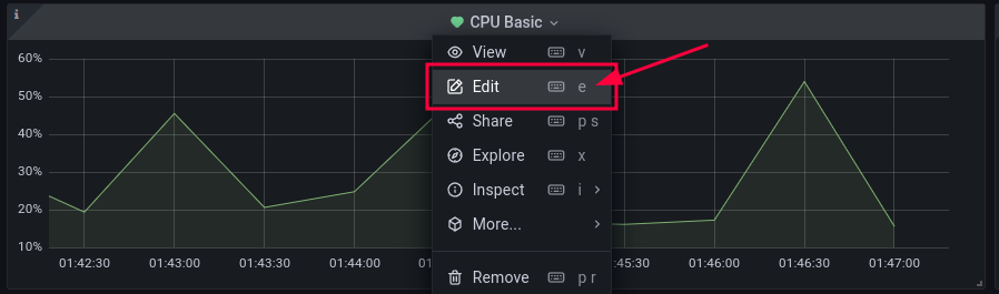 #### 4 - Access the panel inside the Dashboard that you want to add the alert, right-click on the panel and then click "Edit"