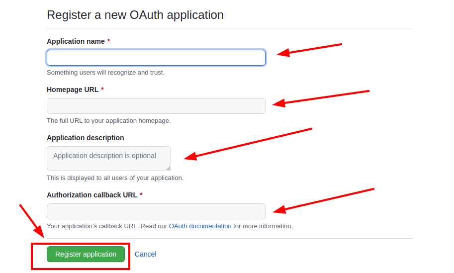 To enable the GitHub OAuth2 you must register your application with GitHub. GitHub will generate a client ID and secret key for you to use. When you create the application you will need to specify a callback URL. Specify this as callback: