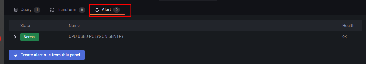 #### 5 - Click the "Alert" tab and click the "Create alert rule from this panel" button to create an alert with a direct link to this panel.