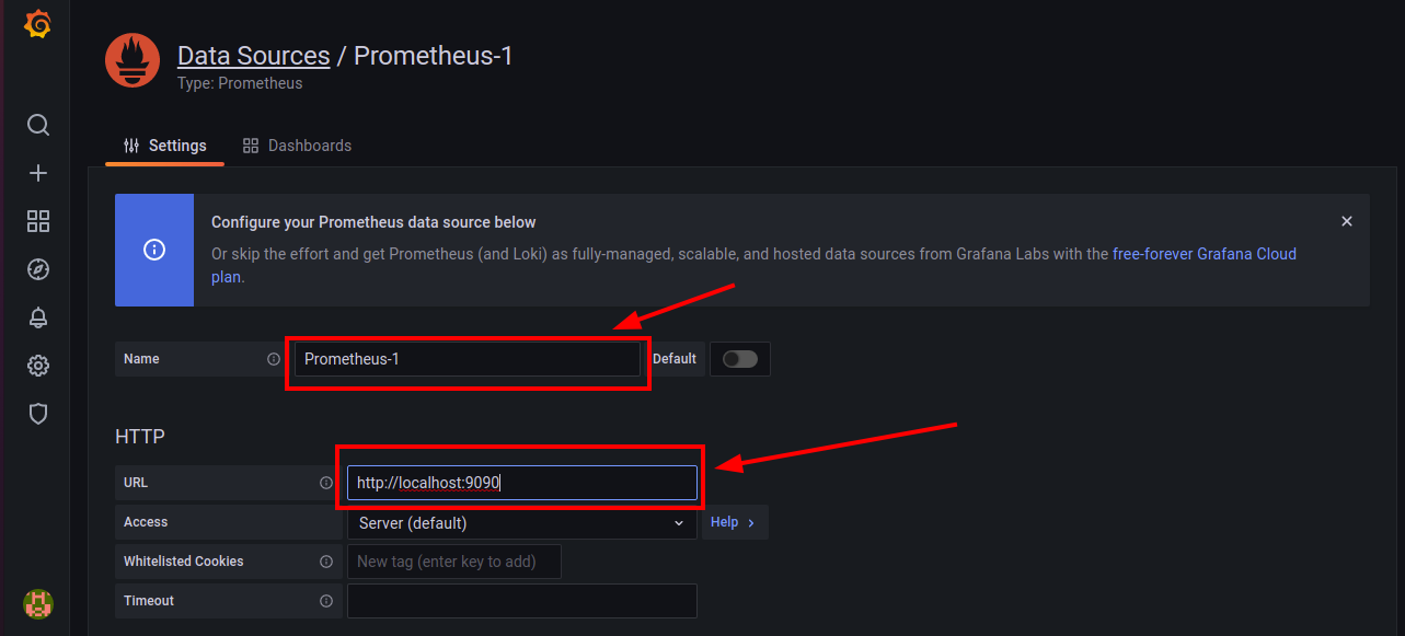 Open Grafana at the following URL: <http://host\\_ip:3000>