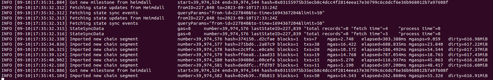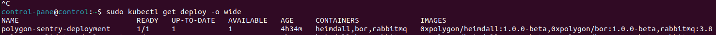 sudo kubectl logs -f polygon-sentry-deployment-cc9449857-9f95k -c heimdall